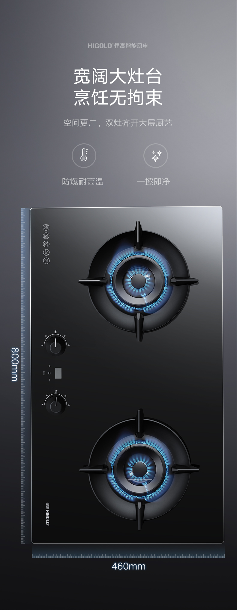 ▪ 800mm宽超大高端黑晶玻璃面板