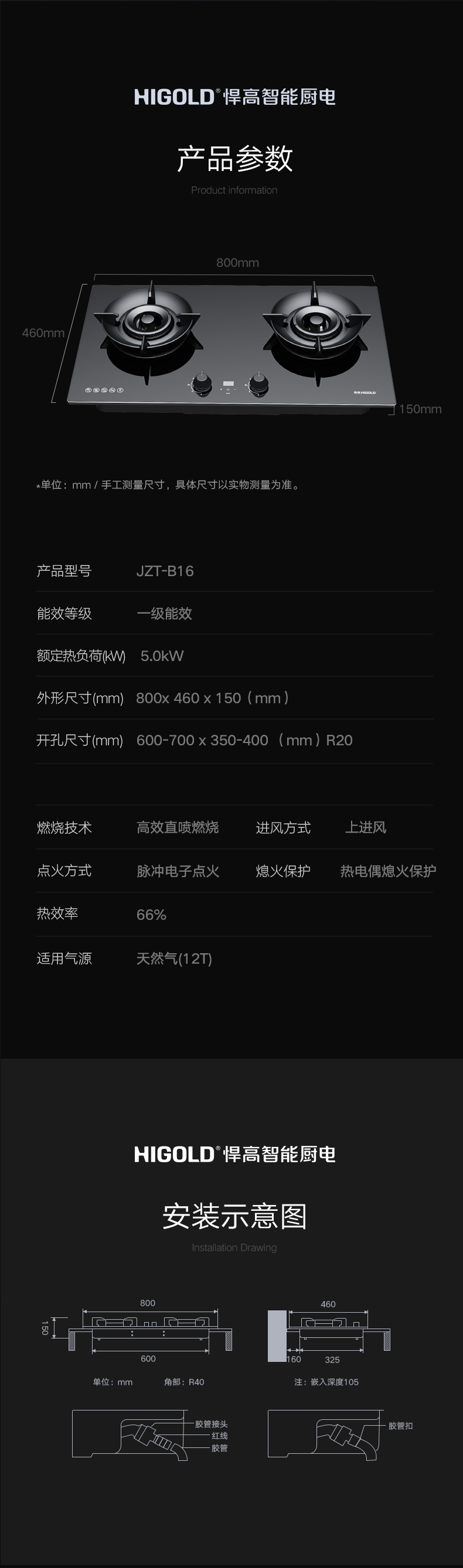 ▪ 全上进风燃烧技术,橱柜不再开孔