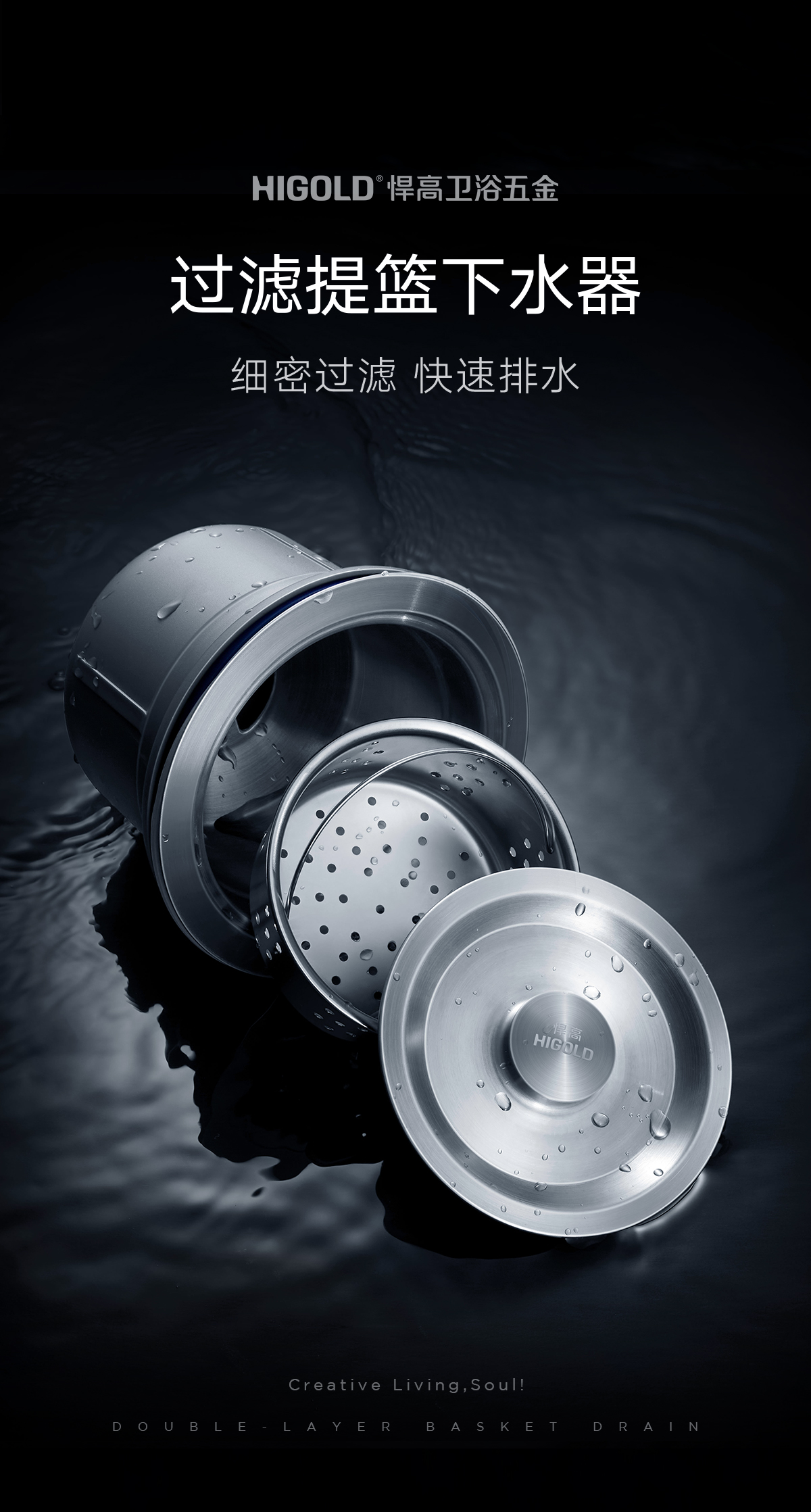 厨房水槽下水器-提扣篮下水器-家装五金-悍高官网