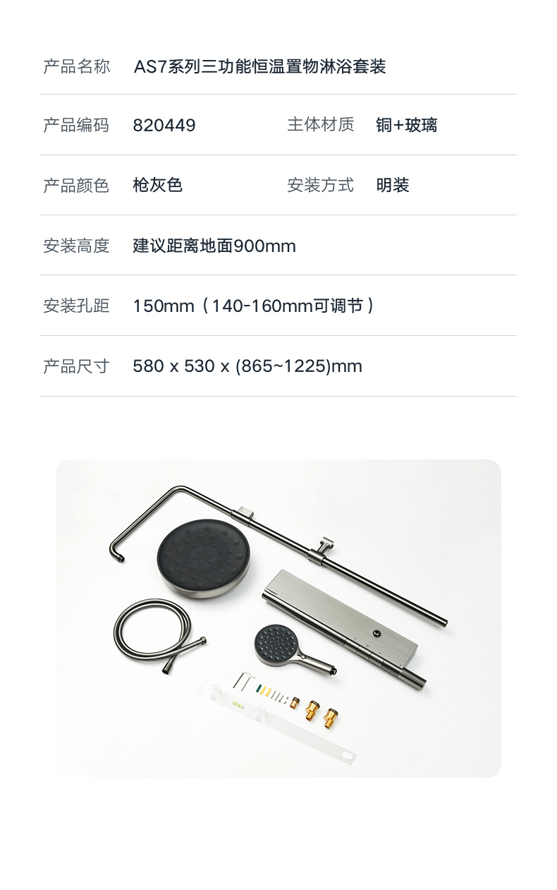 AS7三功能恒温置物淋浴套装20443数显淋浴套装