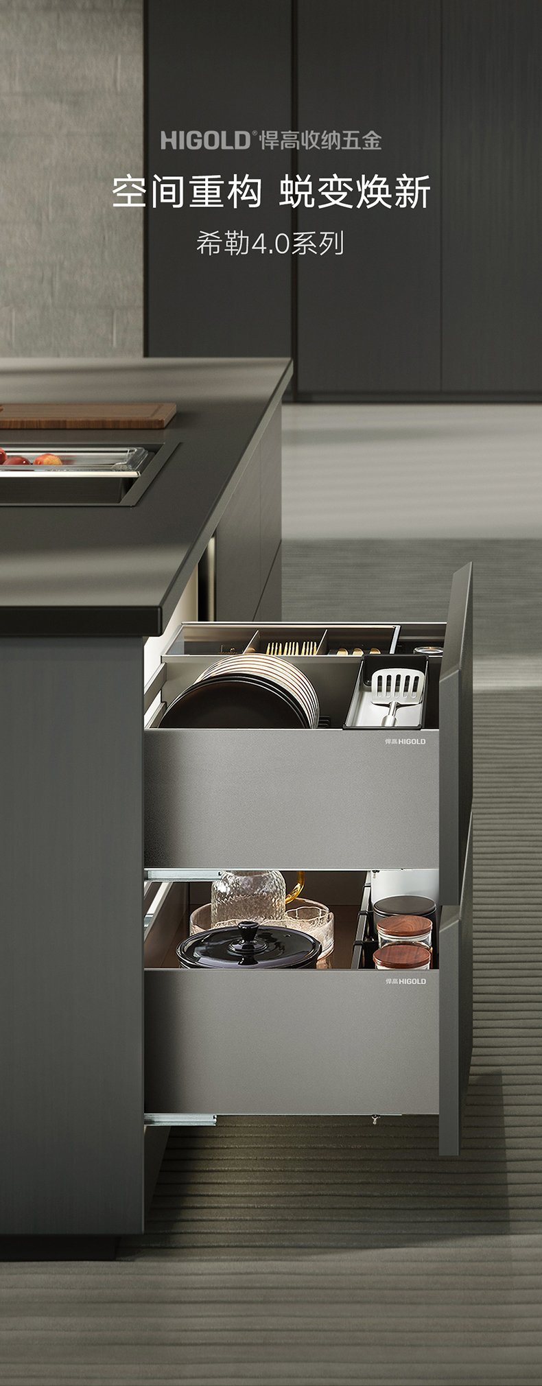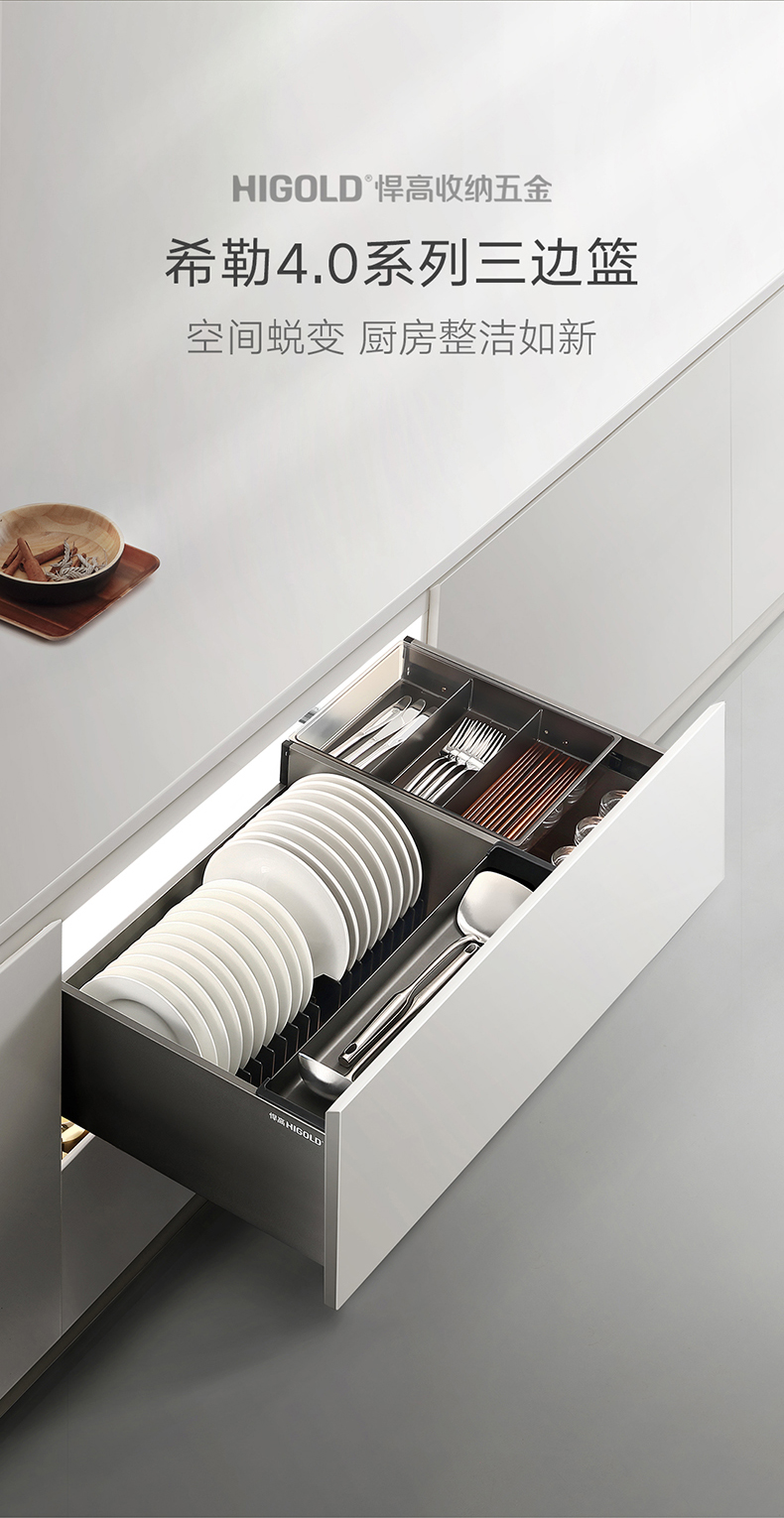 碗碟三边篮-厨房收纳五金系列产品-希勒4.0系列-厨房功能五金
