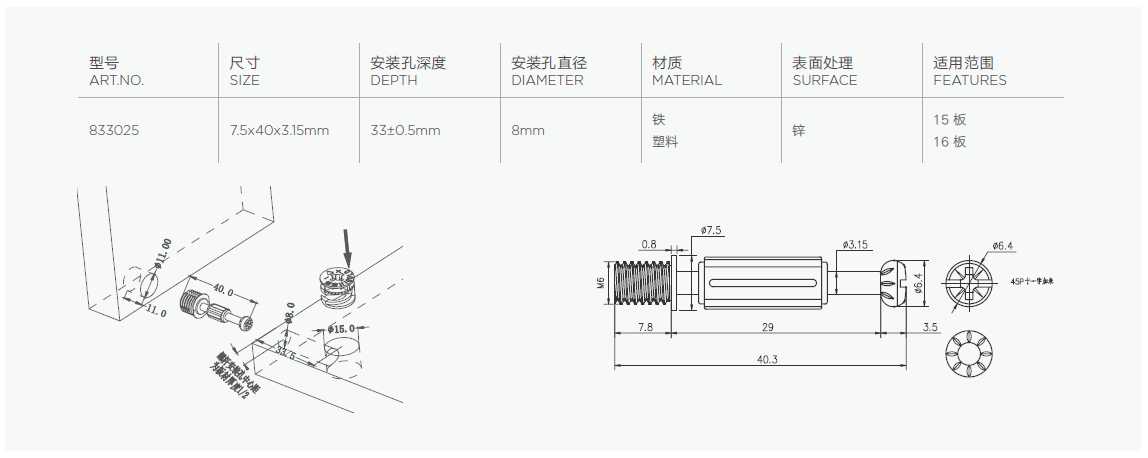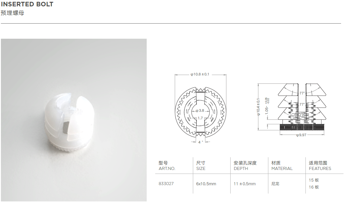 无需预埋螺母与偏心轮,适合高密度的高端板材使用