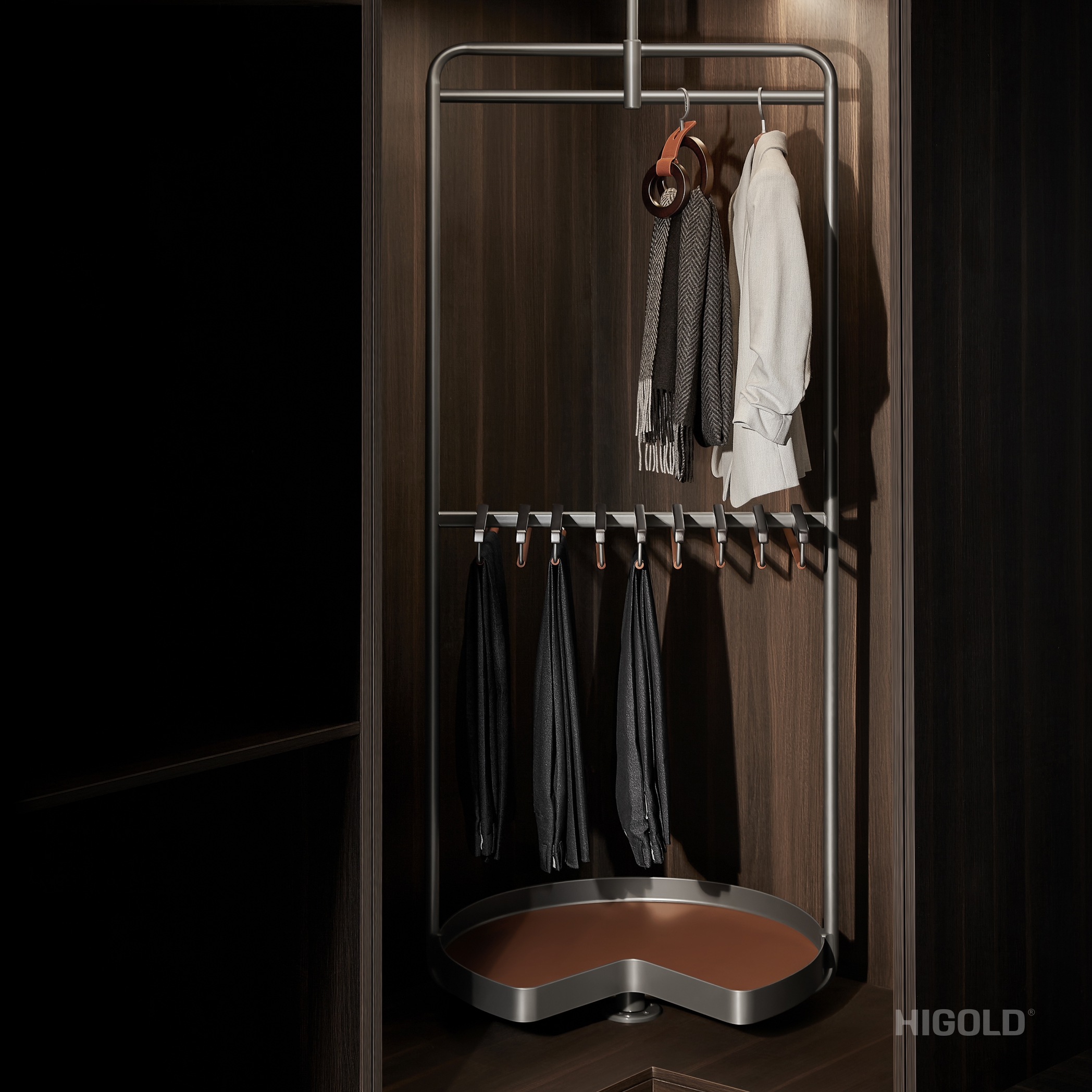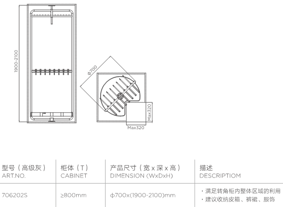 解决传统衣柜转角位难以利用的难题,将纵向空间切割成三层可用位置,
